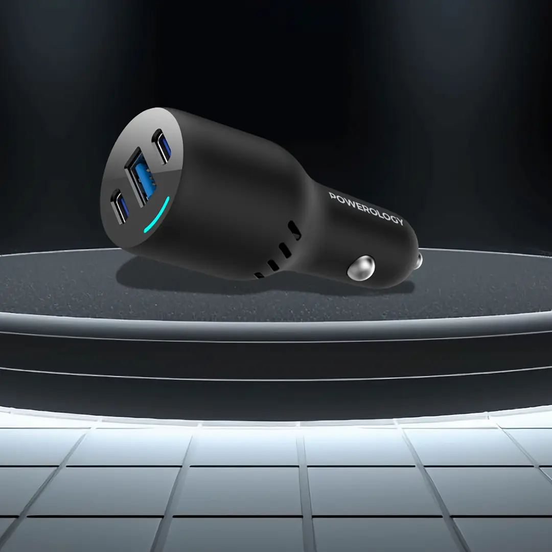 Powerology PD65W + PD20W + QC18W LED Triple Ports Car Charger is a fascinating power solution that makes it super easy and efficient to stay charged while driving. This charger offers three super fast charging ports, including two type-c ports (1* PD 65W + 1* PD20W) and one type-a port with 18W QC. This feature is ideal especially if you’re travelling with your family of friends, as it enables three members to charge their devices all at once. In case of design, Powerology crafted this product with high quality materials (PC+ABS) and built-in safe guards to protect your charger against over-heating. To sum up, this car charger with all its incredible features is a must-have for a convenient driving experience
