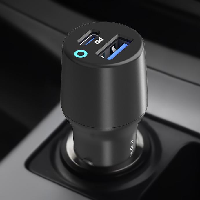 Powerology Dual Port LED Car Charger PD 20W+QC 18W
