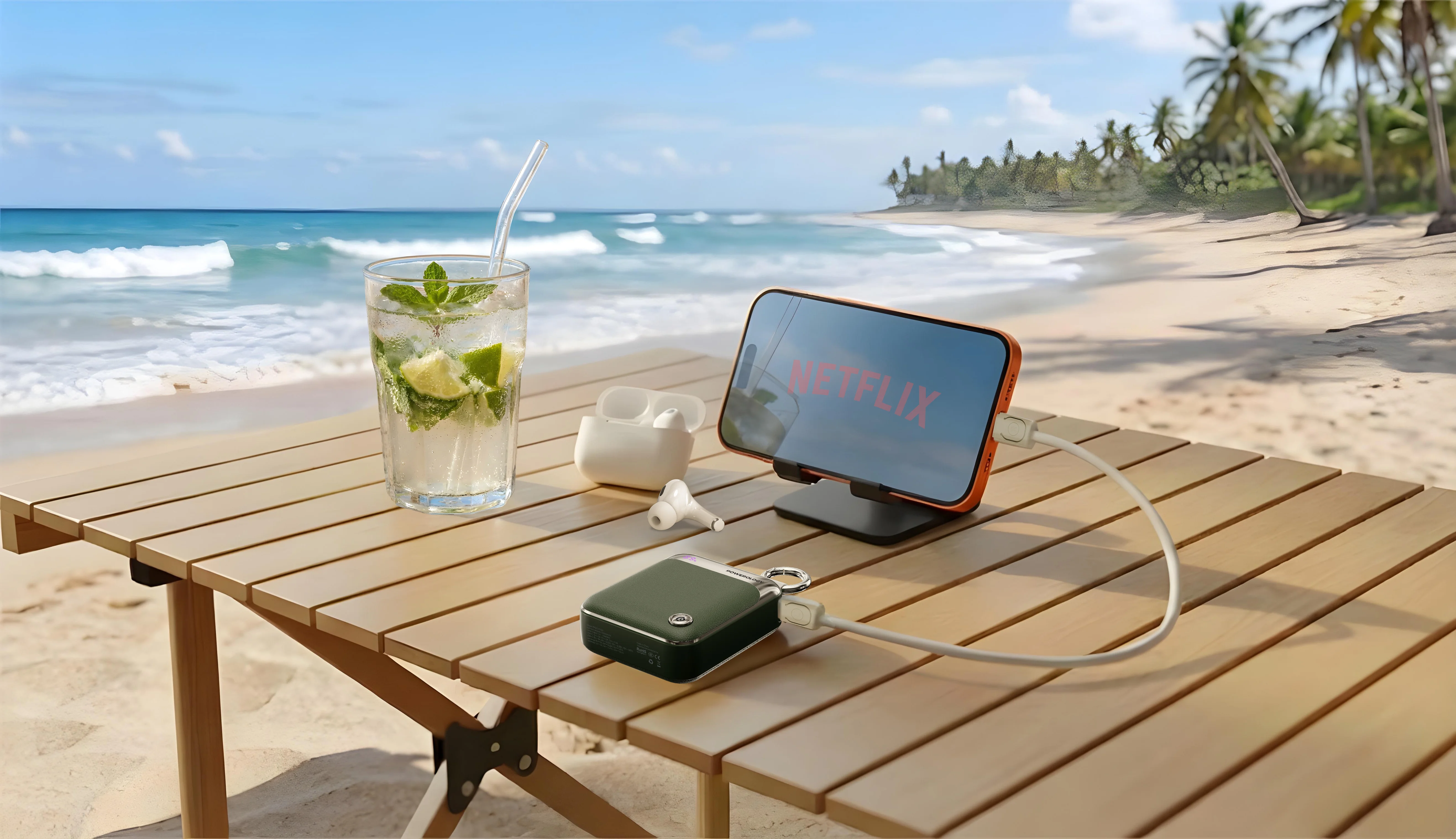 The power bank features a compact and stylish design made from durable ABS and PC materials, along with a built-in 30 cm USB-C cable for added convenience without the need to carry extra cables. It supports multiple input and output options, including USB-C and Lightning, ensuring wide compatibility with various devices. Additionally, it comes with a built-in loop for easy carrying and delivers stable performance thanks to its high-quality construction, making it a perfect companion for travel and everyday use.